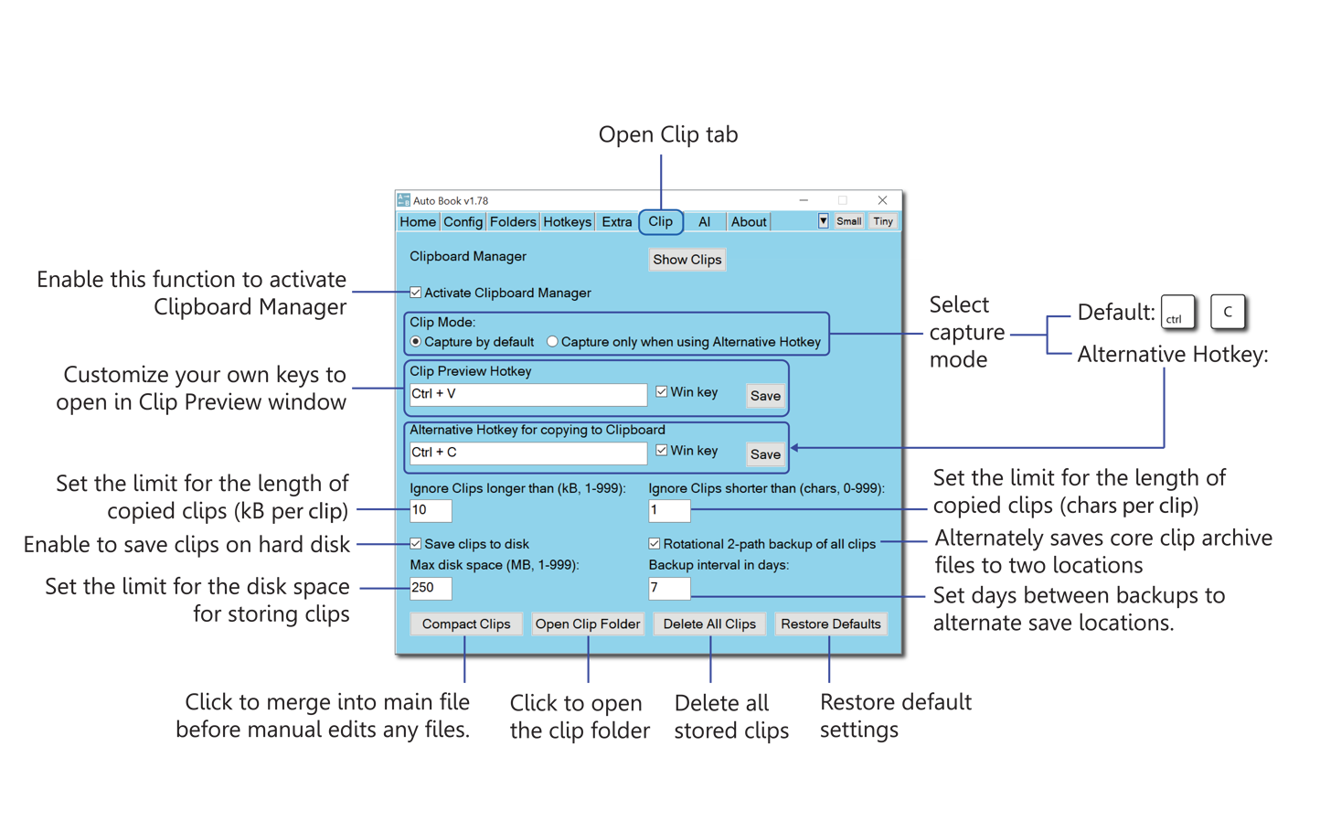 To activate/deactivate the Clip Manager, check/uncheck the Activate Clip Manager