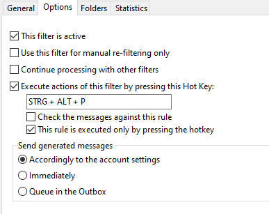 ⯈ Activate the checkbox Execute actions of this filter by pressing this Hot Key.