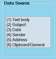 as Data Source, your extraction settings will be applied to the email's sent date as indicated in the email header. To see the content of each Data Source, simply click each source in the listbox without making any other selections while the Process Email Source checkbox is activated.