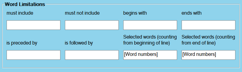 into the Selected words (counting from beginning of line) field in the Word Limitations group.