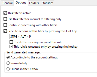 ⯈ Activate the checkbox Execute actions of this filter by pressing this Hot Key.